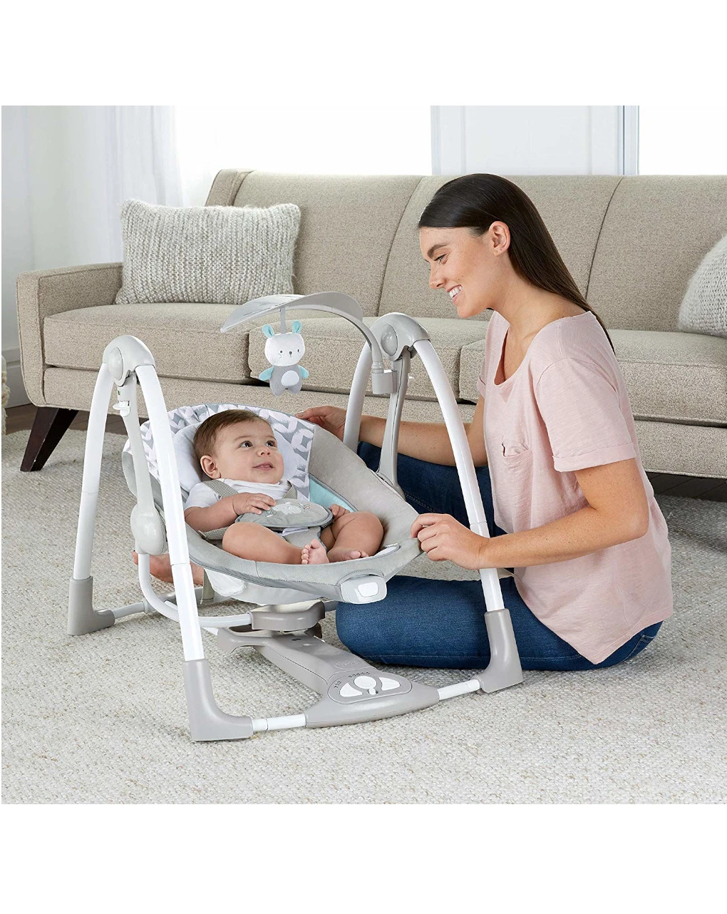Passare da altalena a sdraietta non è mai stato piu semplice. L’impostazione automatica dell’oscillazione sarà calma e confortevole. Puoi trasformare l’altalena in una sdraietta vibrante fissa con il sistema EasyLock sicuro. Porta il comfort in viaggio con questa struttura pieghevol e compatta. Adatta a neonati da 0 a 9 mesi. Imbracatura a 5 punti. Cuscinetto riduttore per la testa. 5 velocità di oscillazione. 12 melodie rilassanti e 4 suoni della natura. Incluso arcogiochi con un peluche. Rivestimento sfoderabile e lavabile in lavatrice. Misure da aperta: L 77,47 x P 53,34 x H 60,96 cm.