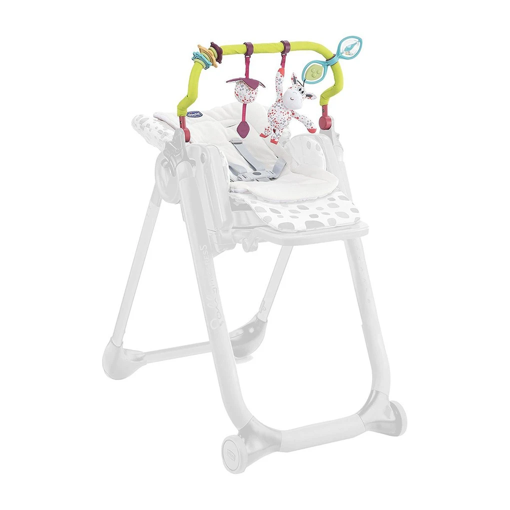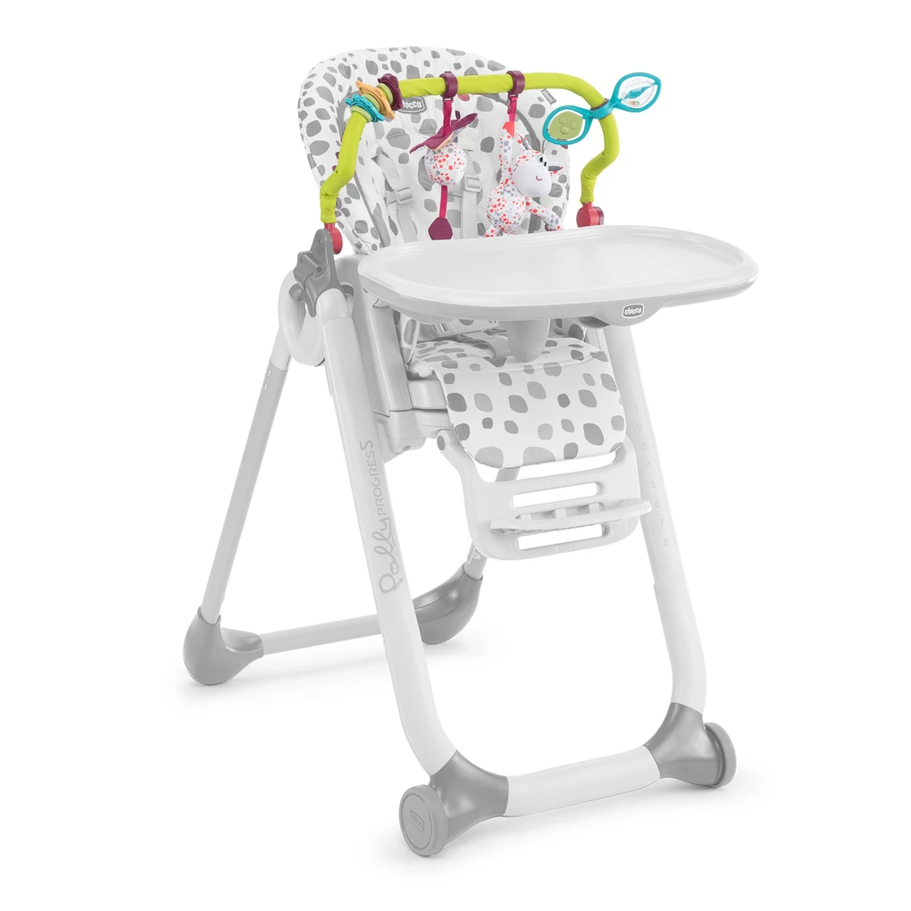 Il confortevole kit è composto da un morbido riduttore in maglia traspirante + da una barra gioco con tante attività diverse. Per catturare la sua attenzione, grazie alle diverse attività, fin da quando è piccino. Si puo’ agganciare agli snodi laterali del seggiolone e puoi regolarla su 3 livelli di inclinazione, per adattarsi alla posizione della seduta.