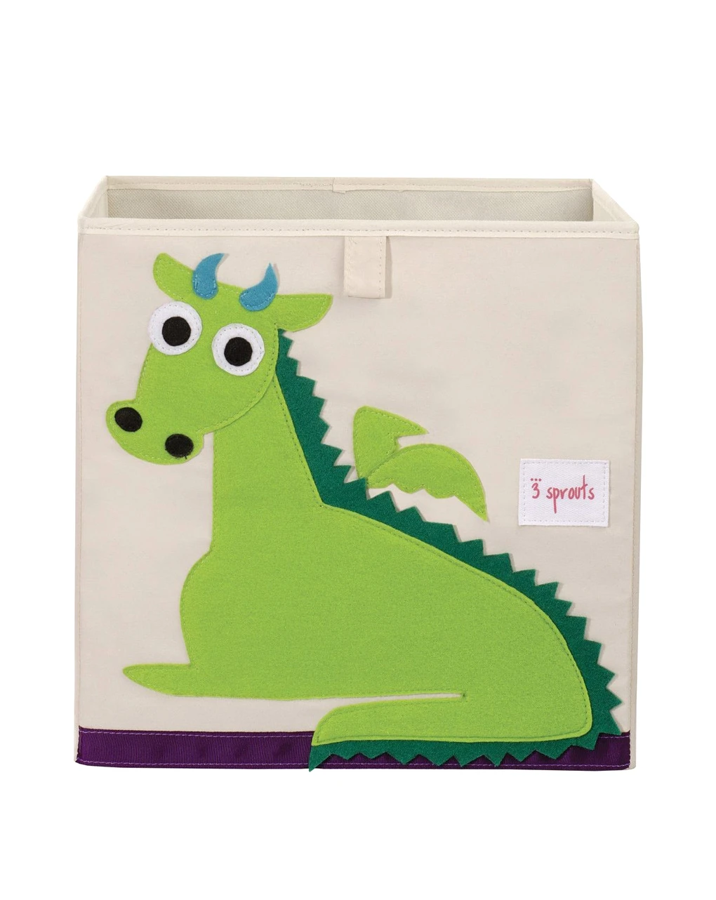 Il Contenitore Portaoggetti Drago è un comodo contenitore con la deliziosa applique di un simpatico drago verde dove poter riporre tutti i giocattoli.