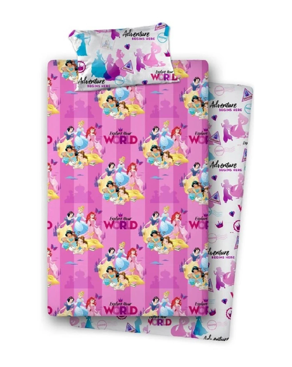 Completo letto da bambina composto da tre pezzi: federa 52×82 cm, lenzuolo sotto con angoli elastici 90×195 cm , lenzuolo sopra 150×280 cm.