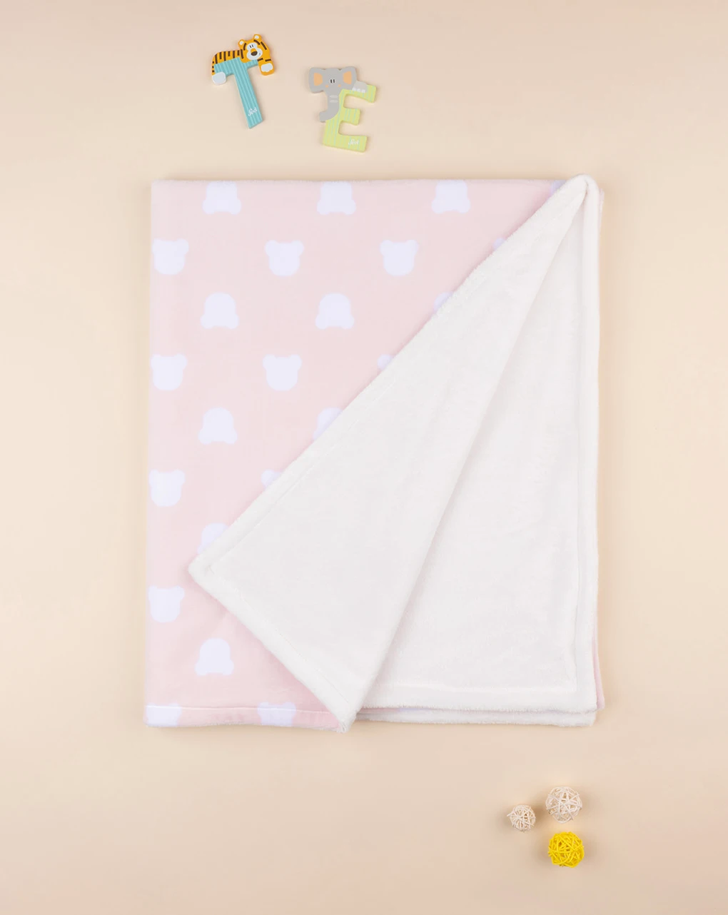 Tenera coperta letto in pile da bambina in 100% poliestere. Il capo si sviluppa da un lato su sfondo rosa chiaro con stampa allover di stilizzati “Teddy” sagomati in tinta panna, dall’altro in total beige. La coperta letto da bambina è maneggevole e particolarmente calda. Accessori non in vendita. La confezione contiene solo il capo d’abbigliamento. Dimensioni: 100×120 cm