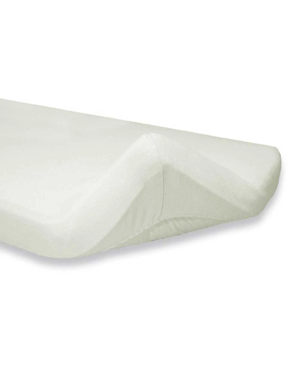 Coprimaterasso in spugna di cotone con angoli color bianco per culla. Dimensioni: 35×73 cm