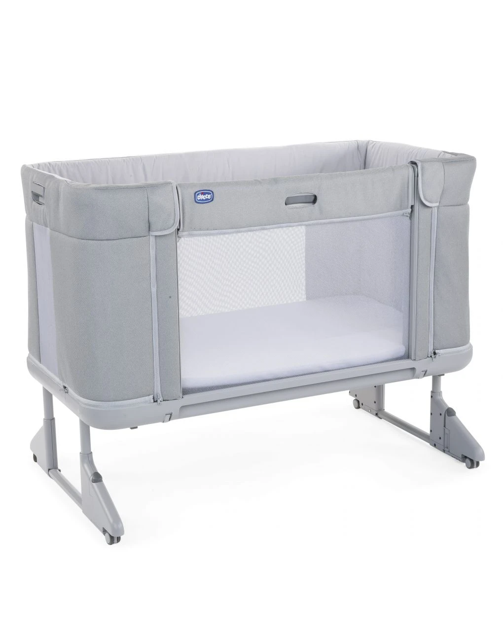 La culla è dotata di un sistema di aggancio semplice e sicuro con 2 cinture. Adatta alla maggior parte dei letti, compresi quelli con cassetti, grazie ai piedini pieghevoli e alla regolazione in altezza a 6 livelli. Può essere anche usata come una culla indipendente, staccata dal letto di mamma e papà.