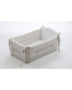 Riduttore per lettino comodo e versatile, completo di base imbottita. Realizzato con 4 cerniere sugli angoli che ne consentono una facile apertura totale. Parte in testata più alta e sagomata. Tessuto 100% cotone di colore panna. Aperto cm. 40 x 70 x 35H – Base cm. 40 x 70 – cm. 35 testata e cm 26 sui laterali e in pediera – Peso 1,5 kg