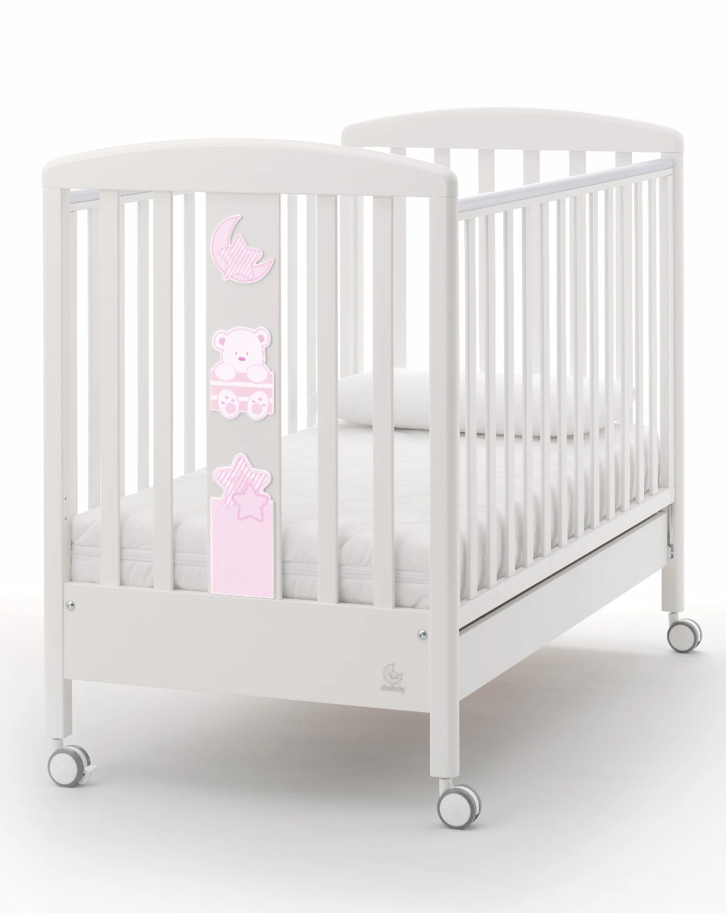 Il lettino My Teddy ha uno stile romantico con teneri decori rosa per la nanna del tuo bambino.