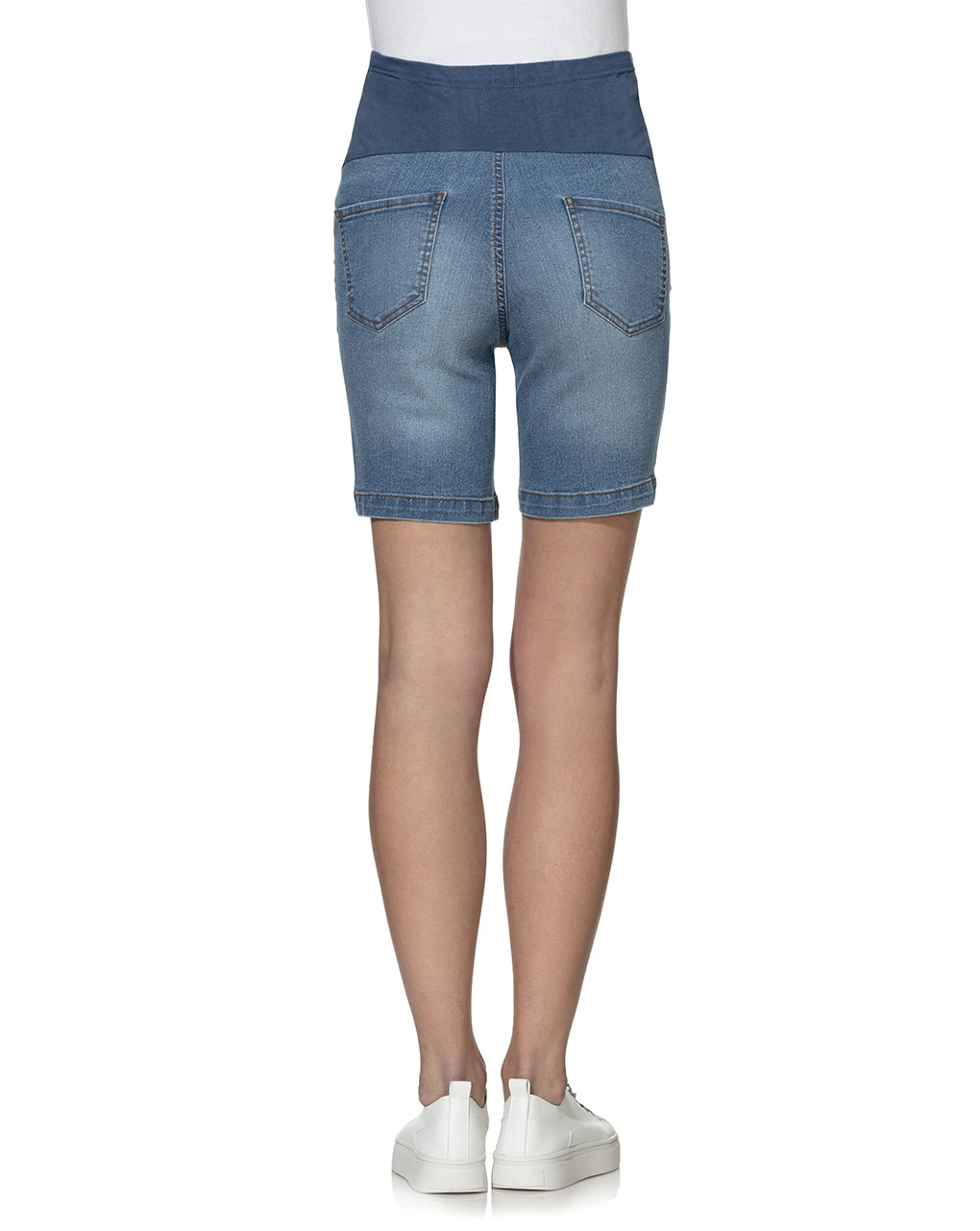 Comodi calzoncini corti in denim con tasche applicate sul retro. Una comoda fascia con elastico regolabile finisce il capo.