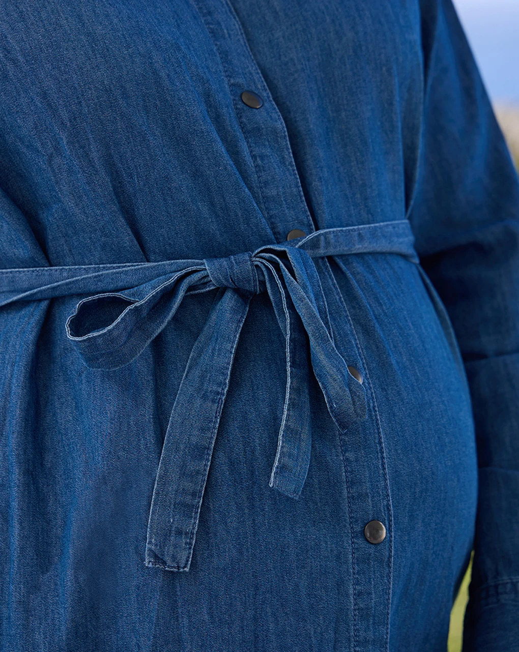 Camicia premaman in chambray effetto denim, dalla vestibilità morbida e confortevole. La chiusura sul davanti con bottoni rende il capo comodo anche per l’allattamento. La camicia presenta una fusciacca abbinata da allacciare sotto il seno, per un tocco femminile al capo.