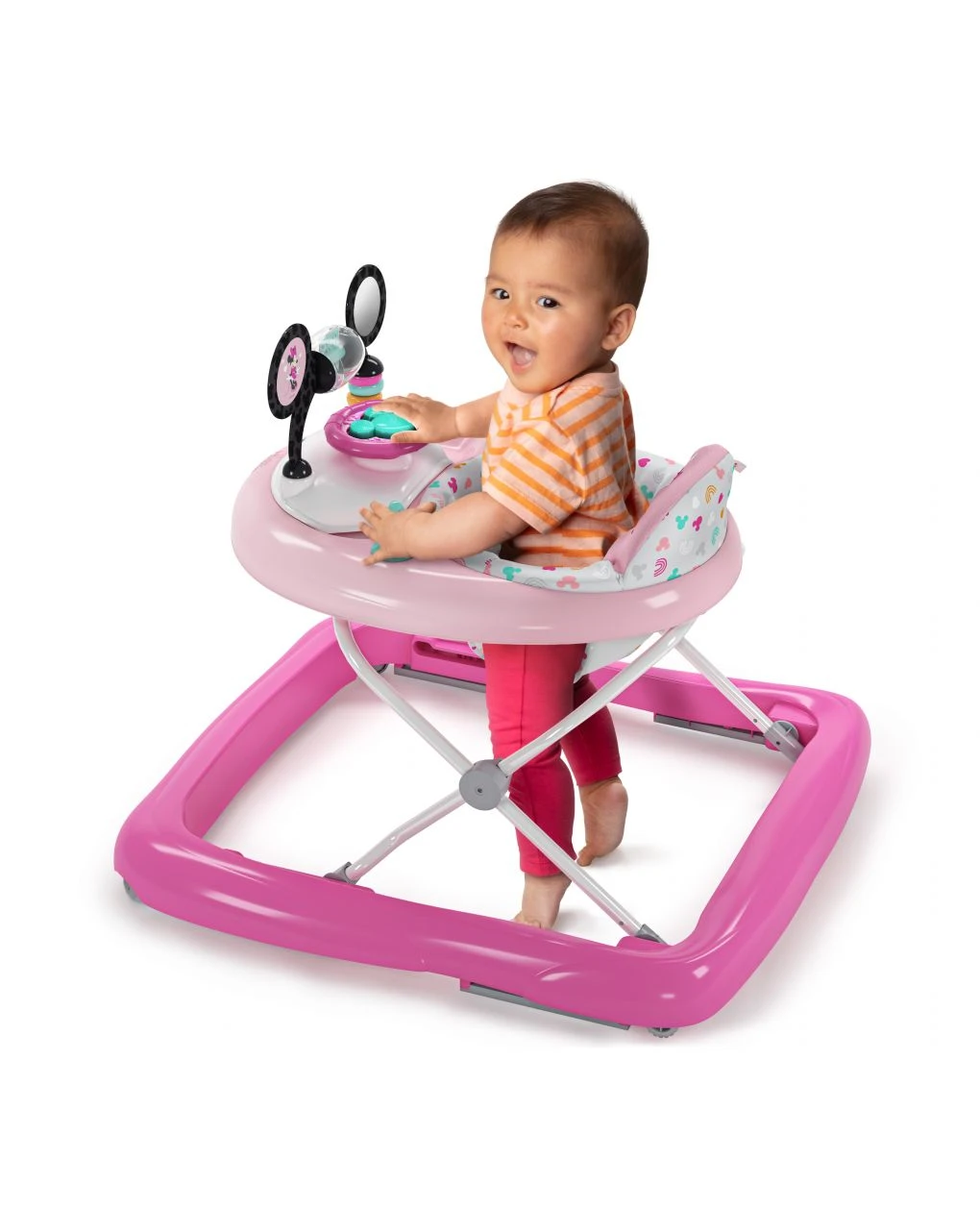È ora di fare una passeggiata e parlare con Disney Minnie Mouse! Il tuo bambino adorerà parlare e andare con la sua migliore amica per sempre in questo girello di Disney Baby e Bright Starts. Prima che il bambino possa camminare da solo, Minnie Mouse è la più grande cheerleader con luci, canzoni e suoni per intrattenere il tuo piccolo. La stazione dei giocattoli è rimovibile per divertimento in movimento e dettagli magici come un rullo con perline che girano, volante luminoso e specchietto di sicurezza per bambini. Conosciuto per la moda e il divertimento, genitori e bambini adoreranno i dettagli colorati di Minnie come la combinazione di colori rosa e grigio chiaro, il motivo a cuore e, naturalmente, le iconiche orecchie di Minnie. E il girello si adatterà sicuramente al tuo bambino con 3 posizioni di altezza facili da regolare, proprio come per magia!