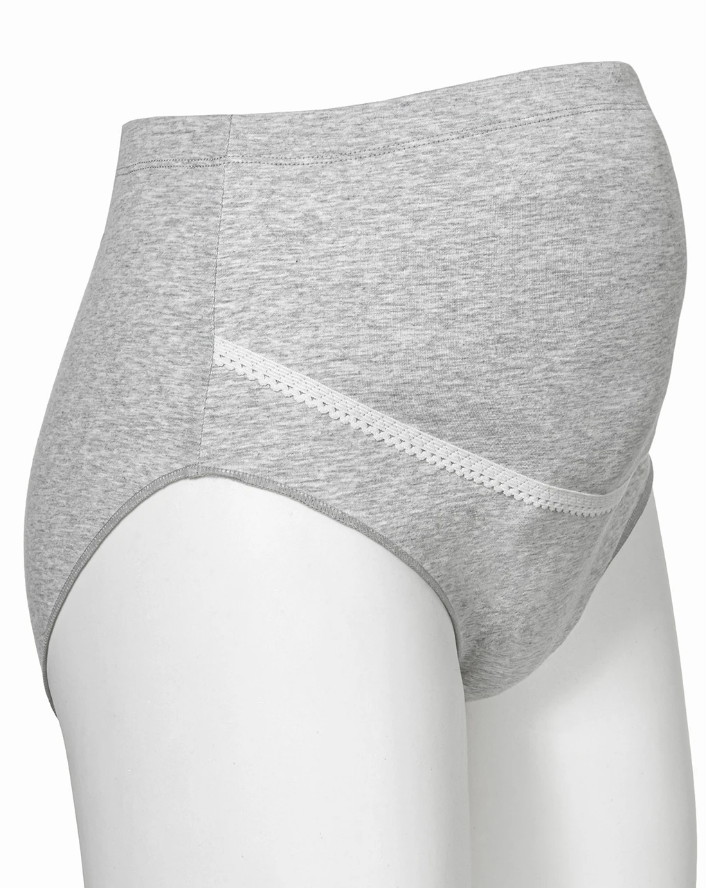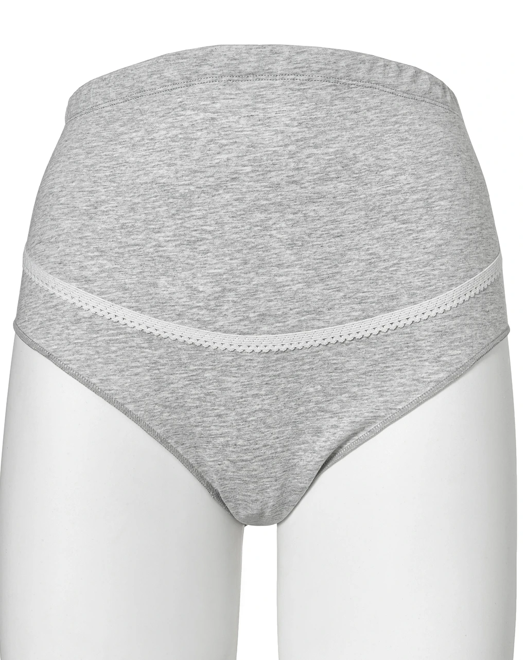 Morbide mutande a vita alta in cotone grigio chiaro mélange con inserto in pizzo. In vita è presente un comodo elastico regolabile