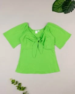 T-shirt premaman manica corta verde chiaro dalla vestibilità morbida e molto confortevole. Il capo presenta un fiocco frontale che garantisce comfort nell’allattamento.