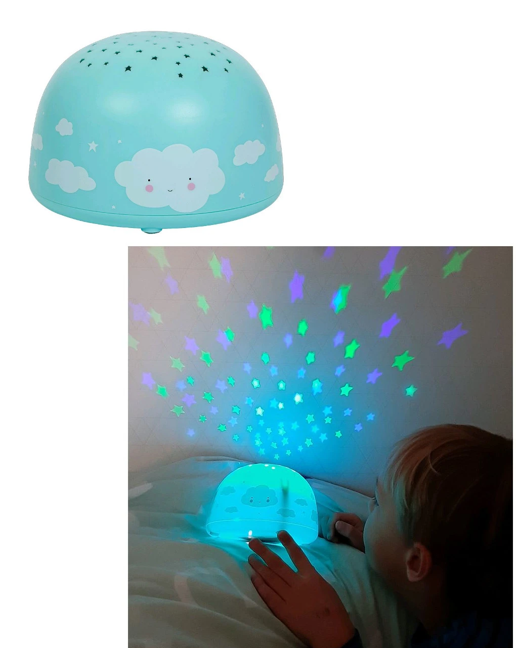 Il proiettore Nuvola riproduce un flusso di stelle colorate. Puoi impostare le stelle su un colore o farle cambiare continuamente ogni pochi secondi.