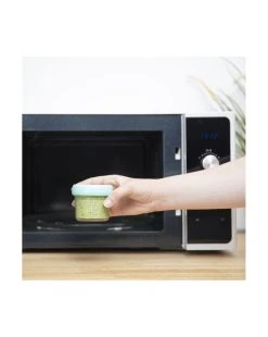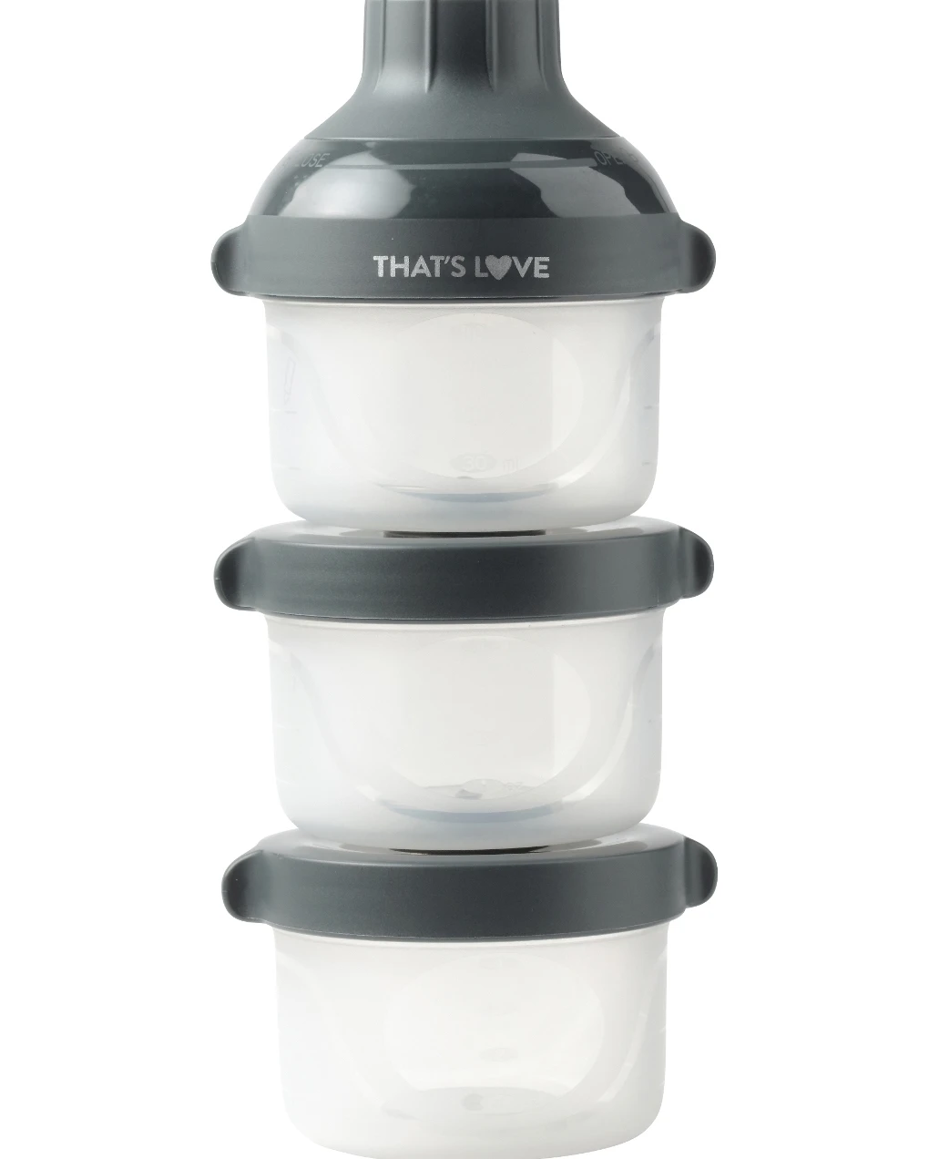 Pratico set composto da 3 contenitori con coperchio. Utilissimo per trasportare facilmente pappe/latte.