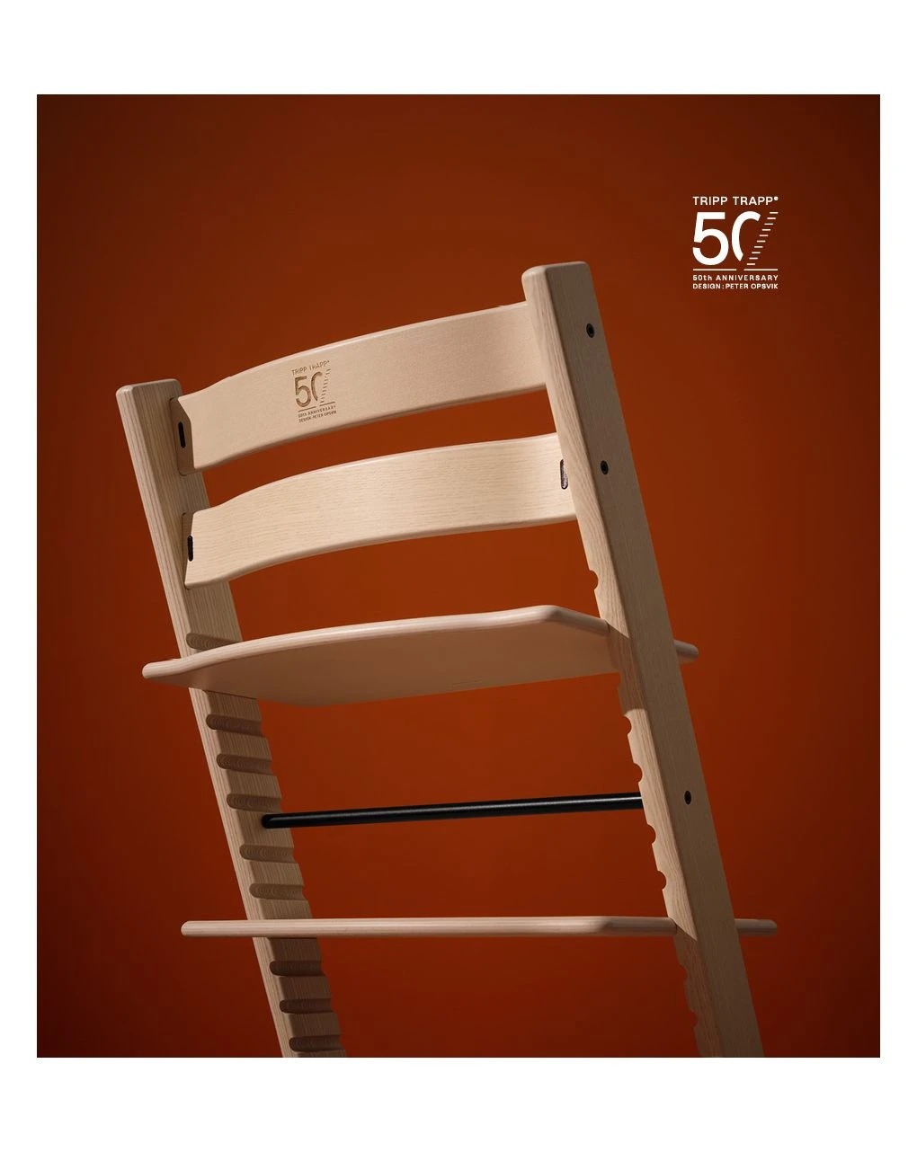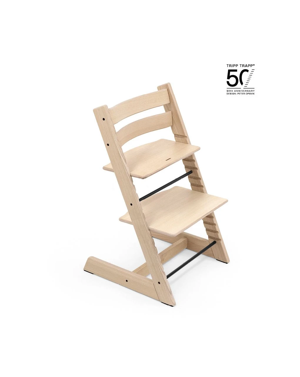 La sedia che dal 1972 dà un posto a tavola a tutti i bambini. Pregevole edizione limitata e numerata in legno di frassino. Logo celebrativo del 50′ anniversario serigrafato sulla sedia. Il bambino può stare comodamente seduto a tavola e godersi il momento della pappa con il resto della famiglia. Le straordinarie possibilità di regolazione della seduta e del poggiapiedi assicurano il corretto sostegno alla schiena e ai piedi in base all’età.